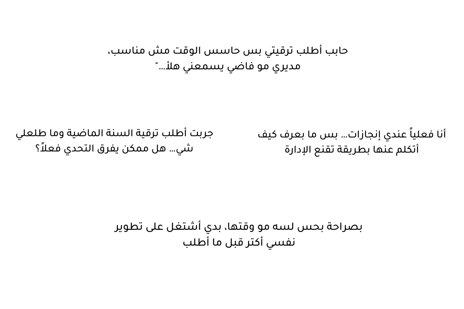 كنت أحتاج إلى طريقة عملية تجعلني أتكلم بثقة عن إنجازي، وأطلب حقي بأسلوب مهني راقٍ… دون أن أشعر أنني أُجامل أو أُطالب بشيء غريب